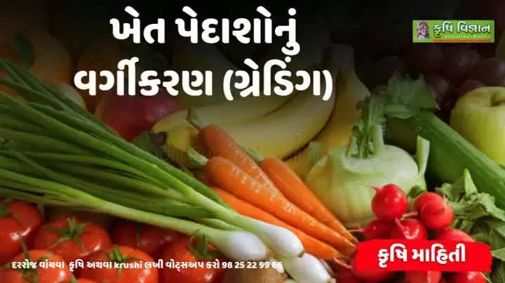 ખેત પેદાશોને અનુલક્ષીને ગ્રેડિંગના ધારા ધોરણો નક્કી કરવામાં આવ્યા છે. દરેક પાકમાં ત્રણથી ચાર ગ્રેડ સુનિશ્ચિત કરવામા આવ્યા છે. જો ખેડૂતમિત્રો આ ધારા ધોરણોના આધારે ગ્રેડિંગ કરે તો વધુ ભાવ