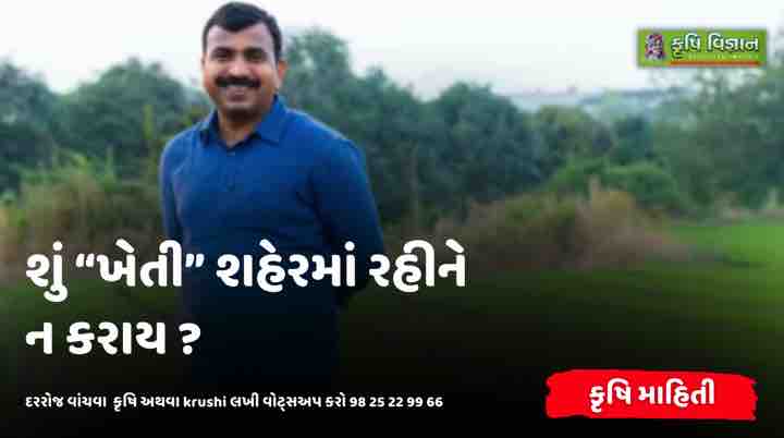 ખેતી શહેરમાં રહીને કરી શકાય ખેતી શહેરમાં રહીને પણ કરાય તો ખરી, પણ એ સાંઢિયે ચડીને છાણાં વિણવાં જેવું ગણાય ! જો આનંદથી અને સંતોષી જીવન જીવવું હોય તો ખેતી