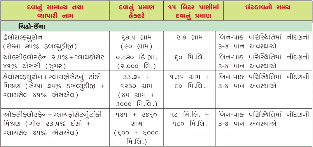 બ્યૂવેરીયા બેસીયાના કે વટિર્સીલીયમ લેકાની નામની ફૂગનો પાઉડર 60 ગ્રામ 15 લિટર પાણીમાં ભેળવી છંટકાવ ફ્લોનિકામાઈડ ૫૦ ડબલ્યૂજી 6 ગ્રામ અથવા ડાયફેન્થ્યૂરોન ૫૦ ડબલ્યૂપી 15