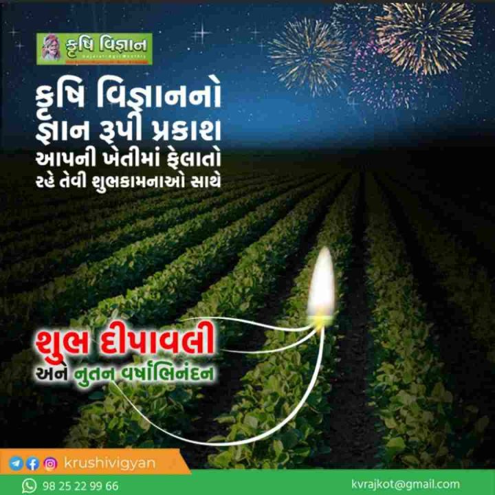 વાંચક મિત્રોને કૃષિ વિજ્ઞાન તરફથી આપને અને આપના પરિવારને દીપાવલી અને નુતન વર્ષની હાર્દિક શુભકામના.
