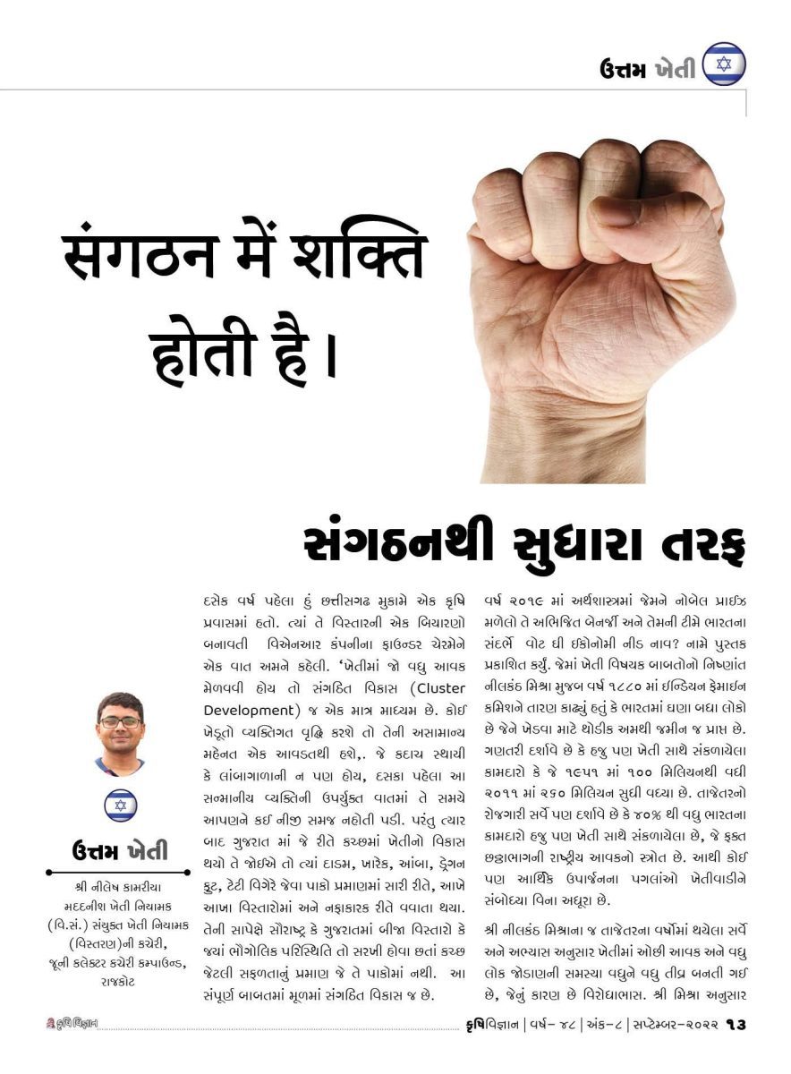 ગુજરાતમાં જે રીતે કચ્છમાં ખેતીનો વિકાસ થયો તે જોઈએ તો ત્યાં દાડમ, ખારેક, આંબા, ડ્રેગન ફ્રૂટ, ટેટી વિગેરે જેવા પાકો પ્રમાણમાં સારી રીતે, આંખે આખા વિસ્તારોમાં અને નફાકારક રીતે વાવતા થયા …..