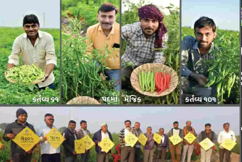 • 🌶 વર્તમાન સમયમાં ચાલી રહેલા પાક નિદર્શનોમાં એક વાત ઉડીને આંખે વળગે એવી હતી એ હતી કર્તવ્ય સીડ્સ અમદાવાદની બે મુખ્ય જાતો કર્તવ્ય મેજીક અને કર્તવ્ય પદમા કે જ્યાં જામકંડોરણાનું દડવી હોય કે કુકાવાવનું સારીંગપુર હોય કે અમરેલીનો અમરાપુર હોય કે જેતપુરનુ દેવકીગાલોલ હોય કે કાલાવડનું પ્રભુજી પીપડીયા આવા અનેક પાક નિદર્શન દ્વારા આ બંને જાતોના ઉત્કૃષ્ટ પરિણામો જોઈને ખેડૂતો પણ કહેતા થઈ ગયા કે મેજીક ને પદમા ની જોડી જામી ગઈ જેને વાવી એની તો કિસ્મત ચમકી ગઈ.