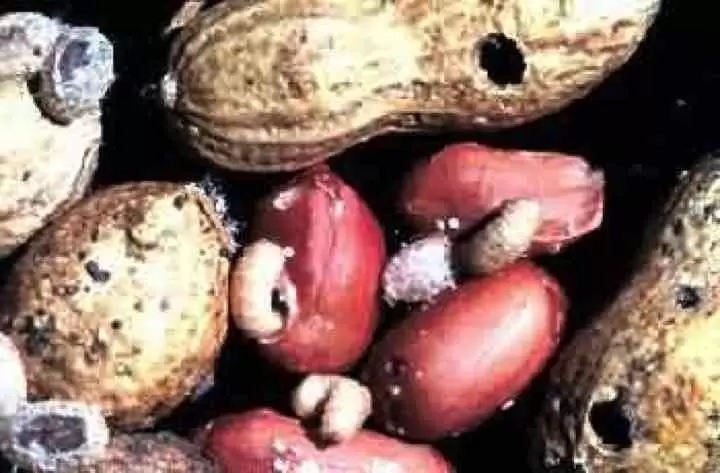 મગફળીનો સંગ્રહ કરતાં પહેલાં તેને સુર્યના તાપમાં બરાબર સૂકવવી અને દાણામાં ૭ ટકા ભેજ રહે ત્યાર બાદ તેનો કોઠારમાં સંગ્રહ કરવો. કોઠારમાં સંગ્રહ કરતાં પહેલા તેની દિવાલો, છત અને તળીયામાં આવેલ તીરાડોને સીમેન્ટથી ભરી દેવી અને ત્યારબાદ તેમાં ચુનો કરવો. નવી મગફળીનો સંગ્રહ કરતાં પહેલાં કોઠારને બરાબર સાફ કરવો, જો કોઠારમાં જીવાત જણાય તો સાયપરમેથ્રીન રપ ઈસી ૧ મિ.લિ. ૧ લીટર પાણીમાં ભેળવીને દિવાલો, ભોંયતળીયા અને છત ઉપર છાંટવું. એક જ કોઠારમાં જુની અને નવી મગફળીનો સંગ્રહ કરવો નહી. જુના કોથળામાં મગફ્ળીનો સંગ્રહ કરવાનો હોય ત્યારે તેને ઉલટાવીને ઉપર જણાવેલ દવાનું છાંટણ કરવુ અને તેને છાયડામાં સૂકવવા અને ત્યાર બાદ સૂકાયેલ કોથળાને ઉલટાવી નાખીને તેમા મગફળી ભરવી. સંગ્રહિત મગફળીમાં જીવાતોની સક્રિય અવસ્થાની હાજરી જણાય ત્યારે એલ્યુમિનિયમ ફોસ્ફાઈડની ૩ ગ્રામની એક એવી ત્રણ પડીકી ૧૦૦૦ કિ.ગ્રા. મગફળીમાં મુકવી અને તેનું ધ્રુમીકરણ કરવું. ધ્રુમીકરણની માવજત તાલીમ પામેલ તાંત્રીક કર્મચારી/ વ્યક્તિના માર્ગદર્શન હેઠળ જ કરવી જોઈએ.