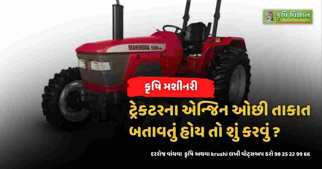 મુશ્કેલી/કારણ ઃ ટ્રેકટર એન્જિન વધારે ગરમ થઈ જતું હોય/બ્રેક ડ્રમની સાથે ચોટતી હોય/એક્ઝોસ્ટ તેમજ એન્જિનમાં કાર્બન જામી ગયેલ હોય/એરક્લિનરમાં કચરો જામ થતો હોય/કમ્પ્રેશન બરાબર ન થતું હોય/ ફ્યુઅલ પંપ/નોઝલ કામ આપતી ન હોય/વાલ્વ યોગ્ય રીતે સીટ પર ફ્ટિ બેસતો ન હોય/ડીઝલ અશુદ્ધ હોય.