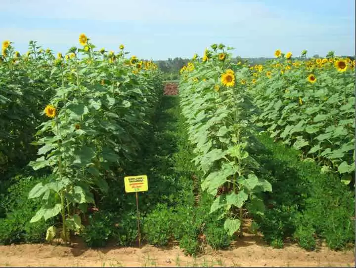 • મગફ્ળીની વેલડી જાતનું ૯૦ સે.મી.ના અંતરે વાવેતર કરી વચ્ચે સૂર્યમુખીની એક હાર કરવી.
